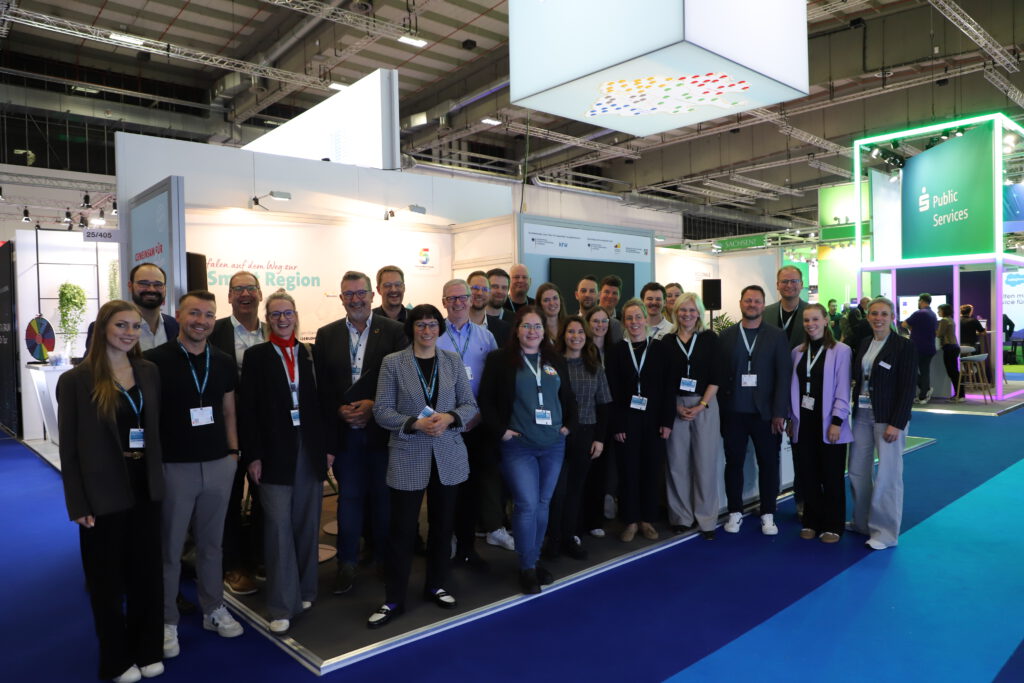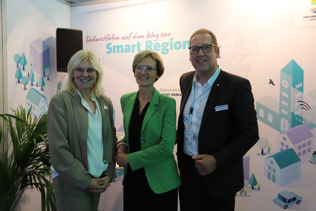 Bereits an Tag 1 war die Messe gut besucht und am Südwestfalen Stand wurde sich untereinander vernetzt und über aktuelle Projekte ausgetauscht. Mit vor Ort waren diesmal natürlich wieder Vertreter:innen aus den fünf Pionierkommunen. Zudem hat es uns sehr gefreut, dass dieses Jahr auch zusätzlich die Smart City Iserlohn mit am Südwestfalen Stand verortet war.